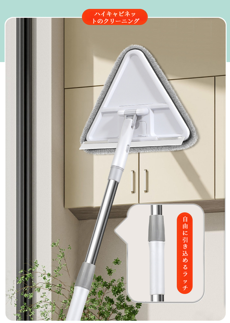 家庭用高層折りたたみ多機能三角モップ 伸縮調節可能なクリーン天井 窓拭きに最適
