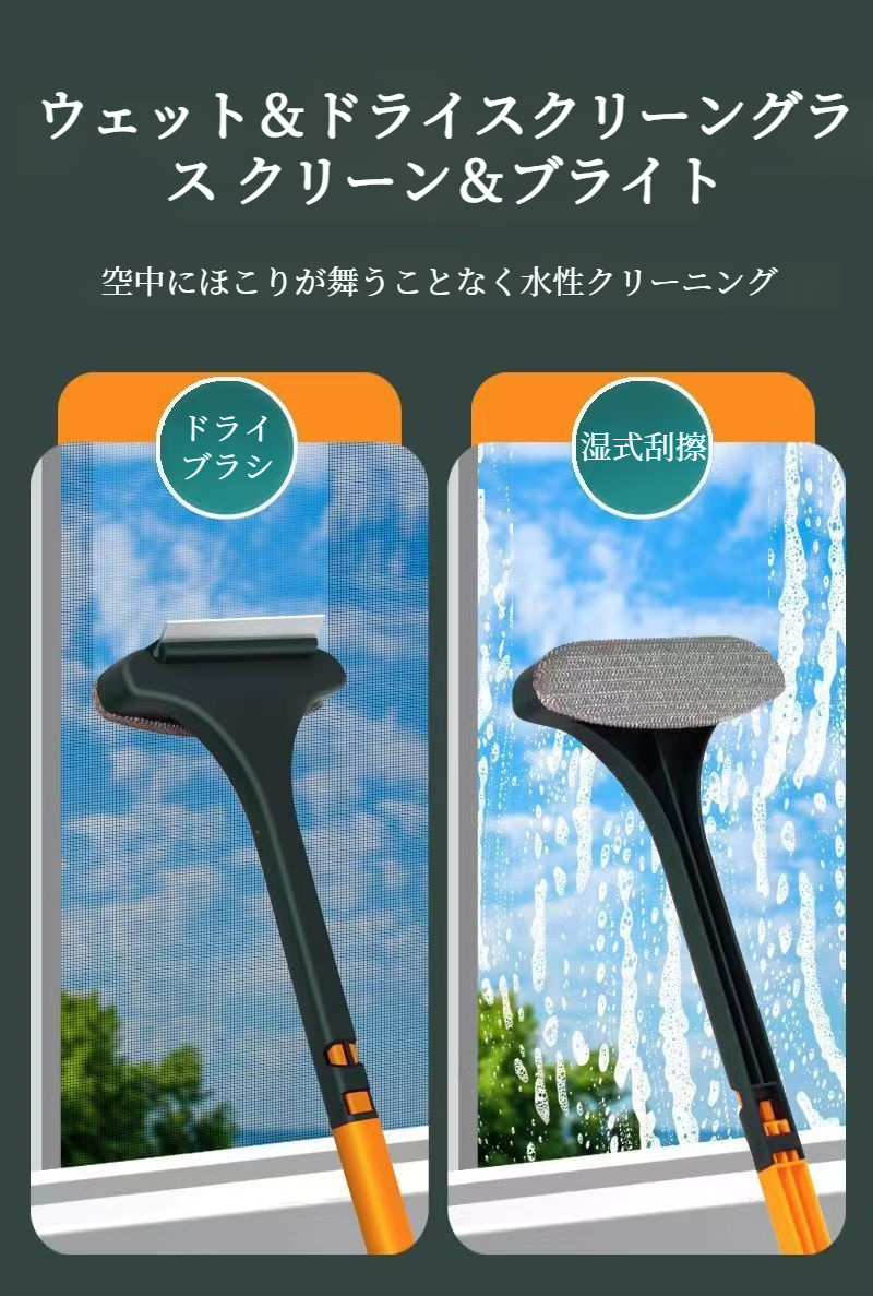 家庭用両面ブラシ 窓拭き 取り外しなし 両面掻き出し 掃除用具 スクリーンブラシ 高層ガラスクリーニングブラシ